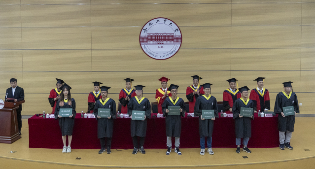 仪式在雄壮的国歌声中正式拉开帷幕。张久兴宣读了《关于授予材料科学与工程学院(宣城校区)2022届本科毕业生学士学位的决定》,主席台领导、老师为毕业生一一颁发学位证书、扶正流苏并合影留念。