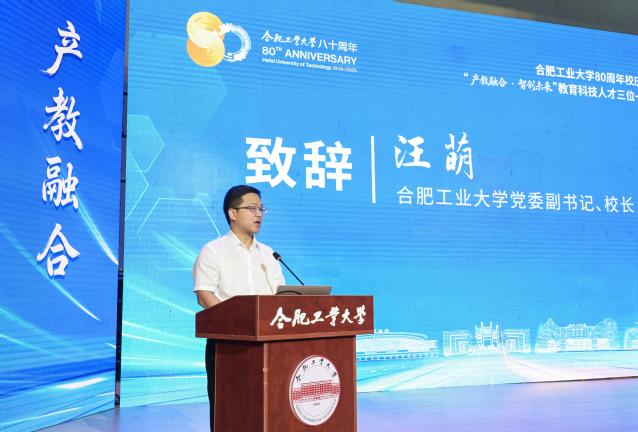 汪萌代表学校向莅临大会的各位嘉宾表示热烈欢迎和衷心感谢。他指出,目前学校构建了“产教融合、教研一体、协同育人、联合攻关”的创新人才培养新模式,成功打造出“千人一领军”创新人才培养品牌,为国家输送了大批优秀毕业生。本次论坛作为80周年校庆主题活动之一,希望各位专家学者、社会各界关心支持学校和宣城校区建设和发展,助力学校在建设特色鲜明的世界一流大学新征程中实现新跨越、书写新篇章。