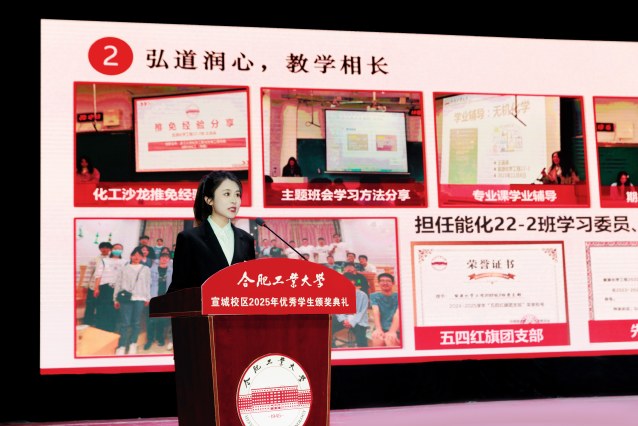 2025年度,校区有171名学生获国家奖学金、299名学生获国家励志奖学金、162名学生获“优秀学生干部”、81名学生获“优秀三好学生”、1861名学生获优秀学生奖学金,19个班级获“先进班级”、87个寝室获“先进寝室”荣誉称号。此外,2名学生获校“大学生年度人物”、23名学生获校“十佳大学生”、80名学生获宣城校区“十佳大学生”荣誉称号。获评的先进集体和个人充分展现了工大学子艰苦奋斗、自强不息、追求卓越、勇攀高峰的精神风貌。